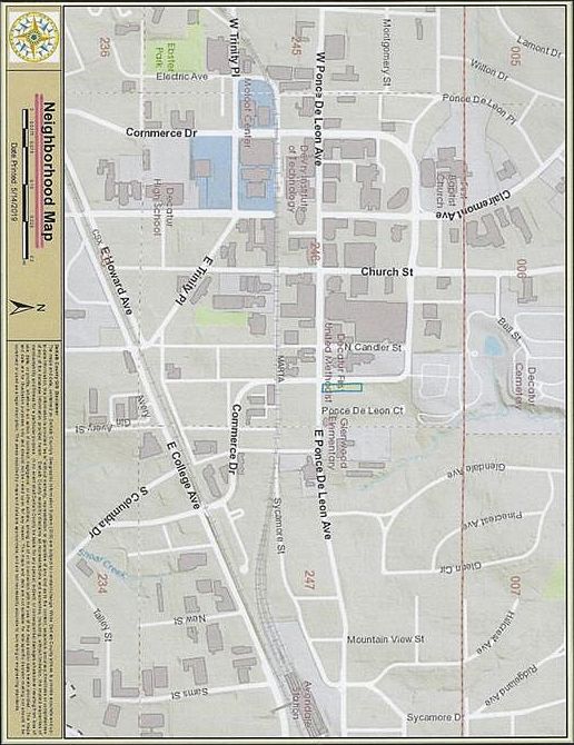 Outstanding Decatur downtown location. Potential to develop single family, townhouses, professional office. All uses subject to site plan & zoning use approval by the City of Decatur Planning Department. First rate development site plan is needed. Walkable short distance to MARTA station, shopping, restaurants, grocery store, hospital and offices (3 blocks). This listing includes two addresses, 600 & 604 Commerce Drive. It also has two tax parcels: Parcel number 15 246 01 020 dimensions approx. 67' x 340'. And parcel number 15 246 01 018 dimensions approx. 70' x 45'.