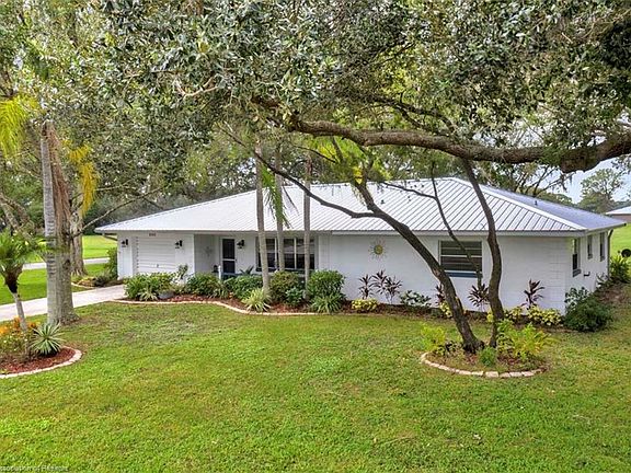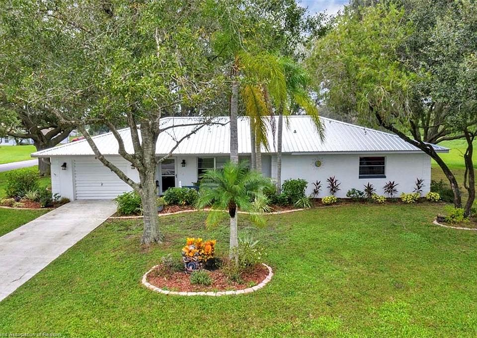 As you arrive at this charming home you will first notice the abundance of mature shade trees, easy to maintain landscaping and brand new metal roof. Passing through the front door with newer storm door you enter into the spacious living room that flows into the dining area. The galley kitchen offers newer stainless steel appliances including convection oven, newer sink with garbage disposal and convenient pull out drawers in the lower cabinets. Off the kitchen is the indoor laundry room with washer and dryer, cabinet storage and entrance to the mudroom/utility room which accesses the rear yard and 3rd bedroom. The garage was previously converted into the 3rd bedroom and can also be used as another living room, office, game room or made back into a one car garage. Down the wide hallway you will find a spacious guest bathroom with walk-in shower, guest bedroom with large 8'x5.5' walk in closet, sprawling master bedroom with 2 - 6'x6' walk-in closets and private master bathroom. The rear screened lanai features newer vinyl windows, pass though window into the kitchen and screen door leading to the spacious and nicely shaded rear yard. The metal roof was just replaced by Ogg Construction in Aug 2020, new gutters have been installed, the hot water heater was replaced and septic was pumped/inspected in 2016. This home will not last long, schedule your showing today!