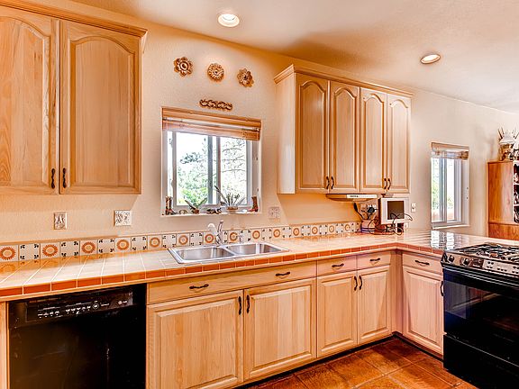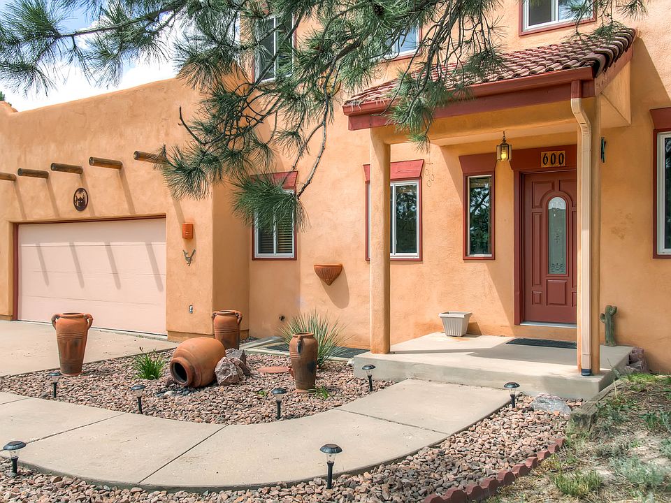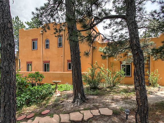 Stunning Custom Santa Fe Style Home with high ceilings, office, heated work shop and walk-out basement. On cul-de-sac and backs to creek nd end of golf course. This is a gorgeous Santa Fe style custom home on two levels with a daylight basement. The basement is set up as a self contained suite with 2 bedrooms, bathroom, small galley kitchen and living room with patio doors to a patio. The main floor has great room with hardwood floors, wood fireplace, high ceilings and beautiful carved maple beam. Dining room has patio doors to a redwood deck. Very large kitchen, separate pantry and utility and powder room attached. Kitchen has custom Spanish style counters. There is a double door entry to hardwood floor office near the entrance way. All doors are 6 panel hardwood to compliment the Santa Fe Style Beautiful and cozy underfloor water heating! Santa Fe style "niches" in the walls, built in "wall" seat resplendent with water heating, nice wood fireplace - decor is neutral pale yellow to compliment the Spanish feel. Very large replacement windows gives abundant light. Wood blinds stay. All exterior doors are replacement too. New roof in 2014. Second floor has master bedroom suite with walk in closet and double Spanish style wash basins in double vanity in the bathroom. Two additional bedrooms and a bathroom on this floor. Third bedroom has exterior door to very large roof terrace. .427 acre lot with decorative southwestern landscaping feature at the front entrance. Circular driveway. Views are rural to trees with a glimpse of Pikes Peak from the great room. The lot slopes down to the meadow land and Dirty Woman Creek to the rear. Exterior is stucco. Home Warranty included. Carpet allowance of $3,000.00 paid to buyer in CASH after the close of the sale. Very close walking trails, all amenities, stores, the Air Force Academy and I25 entrance. Monument town offers eclectic shopping and entertainment. Close to lakes and Palmer Lake town. 20 minutes to Castle Rock and downtown Colorado Springs. Offering 2% to a buyer's realtor. Listing realtor please do not call.