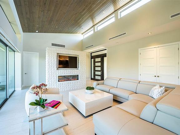 Developed on one of the last remaining vacant lots on the north end of Longboat key, this one of a kind custom canal front new construction home awaits. This open concept contemporary home built by Bluewater Construction features three bedrooms and three bathrooms with finely curated selections, and inspired design. Upon entry into the home you will find 16 foot tall raked ceilings. The storefront windows, pocketing sliding doors, transom and clerestory windows introduce natural light to all areas of the residence, while casement windows open for the fresh gulf breezes. A free standing dimensional tile wall in the main living space, houses a linear electric fireplace and a recess for your television. Moving into the kitchen we have custom cabinetry, quartzite countertops, a paneled thermador refrigerator, Bosch oven, and a wolf induction cooktop and downdraft. Lutron lighting and Lutron shade systems controls the expertly designed lighting in the home and satin nickel led trims are incorporated throughout the cypress t&g ceilings. Concealed surround sound speakers bring entertainment and music to all spaces interior and exterior. A Brinks alarm system and CCTV network cameras designed for home security features professional monitoring and home integrations. WIFI and Cable are also available in all rooms of the home. The master and primary guest bath have double wall hung glass vanities and wall hung toilets, which play into the effort to maximize the efficiency of space in all facets of the home. As we move outdoors, we have an Ipe decked outdoor grill area on a custom aluminum platform. The back porch features a composite t&g ceiling that extends to the soffit, and electric roll down bug screens. The contemporary pool and spa design with state of the art pentair components allows for easy control of the pool, spa, and sheer descent waterfall from your smartphone. On the canal is an Ipe decked dock with a 10,000 lb boat lift. You can take your boat or paddle board to nearby restaurants, sandbars, or cruise along one of the top rated beaches. This custom home with its unique details and tropical landscaping is ready to be your own private piece of paradise.