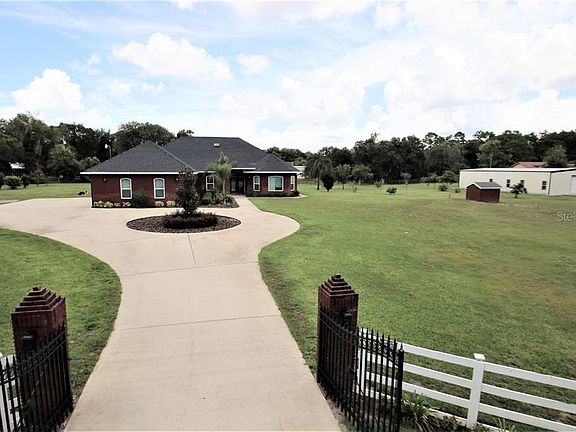 One or more photo(s) has been virtually staged. NO HOA! Bring your horses and other farm animals. Zoned agricultural. Enjoy country living at its best on almost 3 acres! NEW double leaded glass doors invite you into this beautiful home with over 3300 sq ft. Stunning marble flooring entryway welcomes a grand living room with bamboo flooring and exquisite chandelier. Entertaining in this spacious dining room will be a big hit for holiday parties. The kitchen is a chef's delight with stainless steel appliances, 42-inch refinished, pull-out smooth closing cabinets, over-sized subway back splash, center isle with prep sink, under-mounted lighting with multiple LED rotating colors, stainless steel, range hood vented to the outside and double convection oven. Bay windows in kitchen and nook. Several recessed lighting cans have been added to create a very bright kitchen that opens to Family Room. Recently installed decorative electric fireplace creates a lovely ambiance to the room that leads out to the 24 x 12 enclosed sun room under heat and air. Freshly painted interior in 2018. A/C & Hot Water Heater and Roof 2017. Bamboo flooring 2018 and Marble, 2019. Newly remodeled master and guest bath with granite and marble. Walk-in closet has been designed with organizers. Central vacuum for easy cleaning. Lots of upgrades such as ALL BRAND NEW WINDOWS except sunroom. Large picture window in living room is hurricane resistant. WHOLE HOUSE GENERATOR. Ceiling fans in 3 car garage, water softener, round beaded corners, arches and architectural design throughout with tray ceilings in living room, dining room, family room and owners retreat. Washer and dryer included. Utility sink in laundry room. Lots of storage! Totally fenced yard with a 60 x 40 metal out building to store boat, RV, camper, toys, etc. Enjoy delicious fruit trees such as loquat, passion fruit, pears, peach, plum, fig, guava and pineapple. Concrete block construction with brick veneer. Close to Beresford Park where you can fish and have lake access. Close to the award-winning Downtown Deland with quaint shops,restaurants and Stetson University.