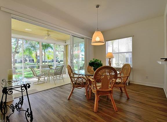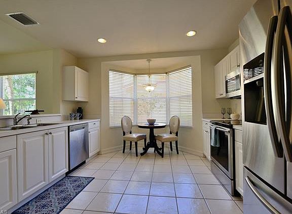 Beautiful end unit, spacious 3/2 carriage home residence with south facing view of lake and fountain, attached garage, tons of natural light, nicely decorated and equipped with everything you'll need for your stay here in SWFL! This property is located in a popular gated community in North Naples west of Livingston Road with excellent proximity to everything Naples, including Mercato with world class shopping, dining, and of course the white sandy beaches of Naples - only a five minute drive! Location is everything!