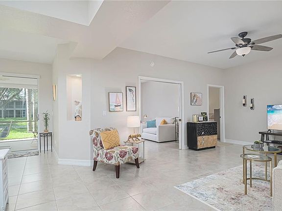 A Diamond in the Rough…First floor lake view corner unit condo in well kept and maintained gated community, centrally located in a prime North Naples area, this property offers convenient access to I-75, dining, shopping, with the beach just a short distance away. Natural light abounds throughout this open concept corner unit with volume ceilings, all new furniture, appliances, new roof, impact windows and window treatments, HVAC, water heater, plumbing fixtures, interior and exterior paint and much more. Step outside on the extra-large patio with southern exposure and the most private section of the community, take in the serene lake view with water feature or enjoy a stroll through the community on the private walking path around Diamond Lake, where you can bask in the natural beauty of mature trees. Paradise Awaits you here in Diamond Lake.
