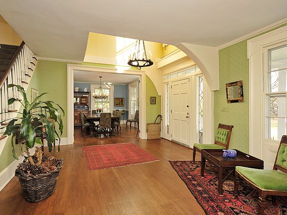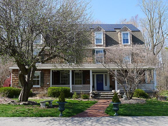 A long tree lined drive leads to this gambrel roof farmhouse built in 1895. Sitting on 1.5 level usable acres, it backs up to woods and was originally part of a farm belonging to the Quaker settlers of New Castle. It is a rare find - a vintage home in a quiet residential neighborhood, completely updated with modern touches. This antique home was moved to a new foundation in the 1970's creating a basement with modern storage and utility as well as the convenience of a built in garage.In the front of the property, a brick walk leads to a cozy front porch. As you enter the home, the double height foyer opens to the spacious living room with custom built-ins and a wood burning fireplace as well as the formal dining room, creating a wonderful entertaining space. The spacious kitchen has been updated with wood cabinetry and marble counters. Adjacent to the kitchen is the family room with bookshelves and a fireplace with a custom mantle.On the second floor, the master bedroom suite has its own fireplace and a sitting room with his and hers walk in closets. The updated master bath has a French console sink as well as a steam shower and whirlpool bath. The newly renovated hall bath has marble basketweave flooring. As you head upstairs, the third floor offers numerous and creative possibilities. There are three bedrooms, hall bath, home office, playroom and study. The original barn on the property has been rebuilt and offers ample storage as well as a third garage bay.This home is LEED certified and features energy efficient technologies: solar panels and a high efficiency furnace, dramatically lower monthly heating, electric and cooling costs to less than $300 per month. The green improvements result in savings of approximately $7500 per year for homes similar in size. This one of a kind property has been featured in numerous photo shoots, the New Castle Historical Society house tour and the Northeast Sustainable Energy Association house tour. More recently, it will be featured in the film A Birder's Guide to Everything starring Ben Kingsley.