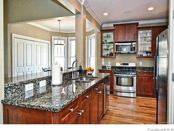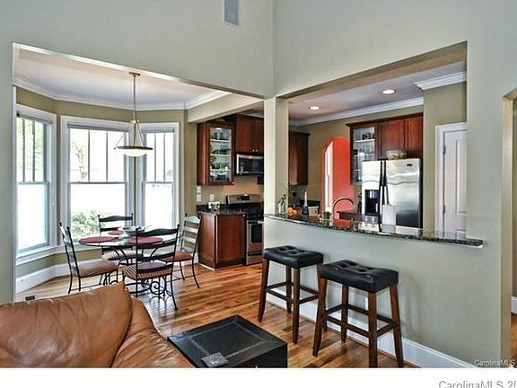 NoDa bungalow including rocking chair front porch. Open floor plan. Kitchen includes granite countertops, stainless steel appliances and gas cooktop. Hardwoods on main level. Incredible backyard that you will not want to leave with flagstone paver patio, koi pond w/ water feature, in ground gas grill, side yard perfect for play and dogs! Two car garage! Yard maintenance included. Walk to the new light rail & all of NODA hot spots-bars,live music, restaurants & more! No showings until May 19th