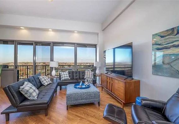 Experience this stunning 2 bedroom, 2 bath penthouse condo with breathtaking views! High ceilings and floor-to-ceiling windows create a bright, spacious, and welcoming atmosphere. Benefit from a covered garage parking spot, a secured floor, and concierge service from 8 AM to midnight. Unwind or entertain on the large private balcony off the living area. The open kitchen features granite countertops, ample storage, and a spacious island. The tranquil bedroom offers comfort and a walk-in closet. Building amenities include pools, a fitness room, tennis courts, a putting green room, a theater, and more. Conveniently located near the downtown airport, KC Current Stadium, River Market, and Berkley Riverfront developments. Tenant responsible for utilities No smoking Pet limit 2
