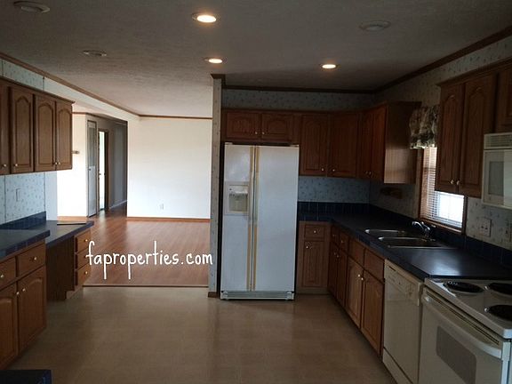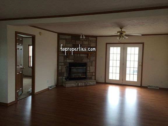 REDUCED! Unique opportunity. This large home features 5 bedrooms and 2 full bathrooms. The large eat-in kitchen includes a stove, dishwasher, refrigerator and microwave. Lovely hardwood laminate floors through much of the home and plush carpet in the rest. Get cozy next to the fireplace in the large living room. The master bedroom boasts two walk-in closets and a spacious en-suite. The flexible floor plan could easily accommodate an at home business with separate entrance. The yard is fenced and there is plenty of parking. This home is adjacent to a business but suitable for a family. Schools: Elementary - Scott, Middle - North, High - North Tenant responsible for all utilities. 12 month lease with matching security deposit. No pets and no smoking.
