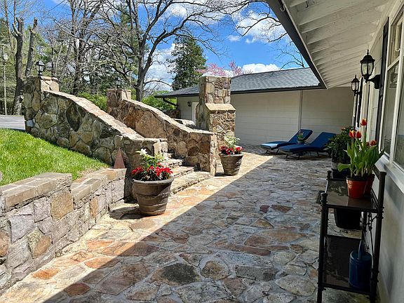 Experience the best of Lookout Mountain living in this charming 3 bedroom 3 bathroom one level home with brow views. Wake up and watch the sunrise over the mountains from your primary bedroom window. Grab your coffee from the spacious kitchen with granite countertops and take in the view from the library or large great room with cozy wood burning fireplace. Walk down the short gravel path right off your circular driveway to Lookout Mountain Elementary and Lookout Mountain Presbyterian Church without ever stepping foot on the road. Enjoy the beautifully landscaped one acre lot with mature trees and fully serviced irrigation system. Sit outside on your private mountain patio by the outdoor stone fireplace. There are so many perfect places to gather, both inside and outside. The primary bedroom has views of the brow on one side and French doors that open onto your private mountain stone patio on the other side. The primary bath has a large jetted garden tub and large shower. The huge walk in closet has plenty of space! Beautiful, original heart pine floors, new roof in 2022, fully painted inside and updated electrical. There is a detached single car garage with an office or living area with half bath and another mountain stone patio with outdoor potting area and sink perfect for gardening. This home is full of charm and character yet has many modern amenities.