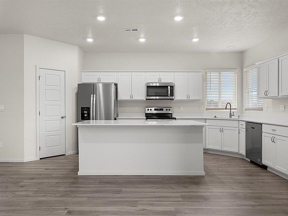 Welcome to the Lawson plan by D.R. Horton! This thoughtfully designed single-level home features 4 bedrooms and 2 bathrooms, offering 2,003 square feet of comfortable living space. The open-concept layout maximizes functionality and flow, making it ideal for modern living and entertaining. The spacious kitchen is a chef’s dream, complete with an oversized island, ample countertop space, a walk-in corner pantry, and stainless-steel appliances, including a dishwasher, range, and microwave. The kitchen seamlessly overlooks the large living room and connects to a spacious dining area, which offers direct access to the outdoors—perfect for indoor-outdoor living and entertaining. The primary suite is located at the back of the home for ultimate privacy and includes a generous en suite bathroom with a walk-in shower, a spacious walk-in closet, and a convenient connection to the laundry room. Three additional bedrooms are positioned to offer versatility and comfort and share a full bathroom.