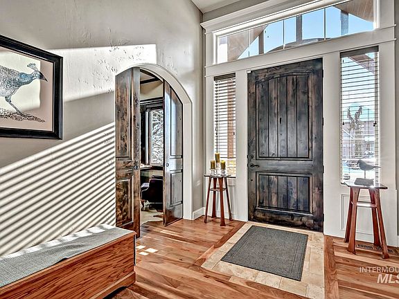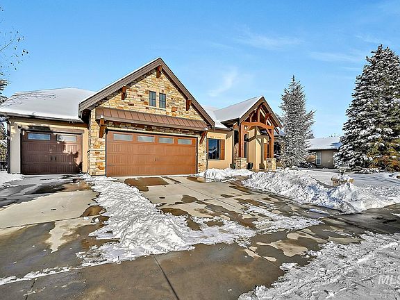 Luxurious, light-filled, retreat invites you to nest in comfort, entertain at will, and relax in the peace of a waterside Idaho home. Contemporary top-quality build w/ European architectural styles provides a roomy yet cozy and inviting atmosphere in which you can soak in the benefits of a gated community with pool, walking paths, great neighbors, and of course a pond graced with swans and sweet sounds of nature. Graceful primary suite looks north over the water and accesses a year-round covered patio and outdoor kitchen. Stone & wood-accented great room brings you all in for the central core of cooking and communing. Bedroom wing is offset, quiet, and serene while the grand entry offers a warm welcome and access to your own library and formal dining. Upstairs movie-hub and guest retreat has full bath. 3+ garage includes work/workout room w/ mini split heat & A/C. Wine cellar, Butler's pantry, "mud room" and laundry room round out a thoughtfully planned home. Raised garden beds will showcase your green thumb!