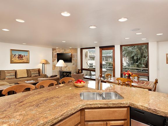 This top floor condo has views of Aspen Mountain, Red Mountain, Independence Pass and Shadow Mountain. In the 2011 remodel, the kitchen was opened up and granite was installed against the west wall and around the kitchen. The condo has a gas log fireplace, washer/dryer and is fully furnished. Rarely does a top floor Concept condo come on the market. Building has underground parking and a newly upgraded elevator.