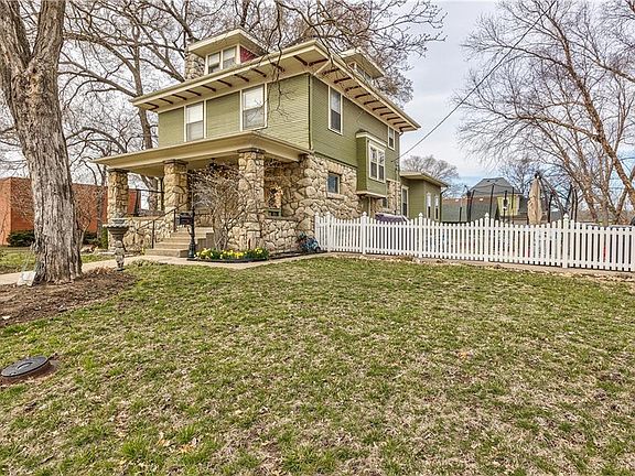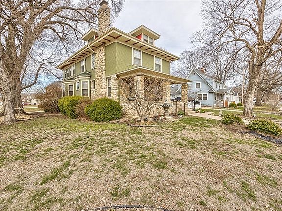 Stunning and stately with old world charm and on the Olathe Historic Register. This 120 year old home features modern conveniences and original finishes. Beautiful natural wood moldings, doors, bannisters and trim. Hardwood floors throughout. Completely updated kitchen with granite counters, gas range, huge island and stainless appliances. Main level also features spacious dining area, two living areas, half bath and laundry room. Amazing master suite with spa like bath and walk in closet. Three additional bedrooms on second level with large second bath. Recently renovated third floor 5th bedroom. Private, fenced backyard space with two driveways and 2 car detached garage. Amazing opportunity in fantastic Olathe location.