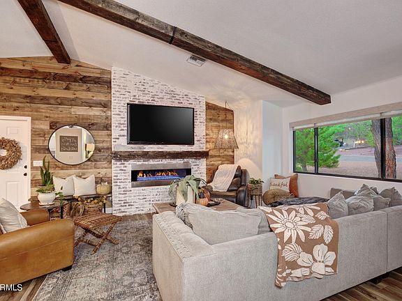 You won't want to miss this updated Payson home! The cozy yet open floor plan boasts a white and bright color palette with exposed wood beams and neutral wood flooring. The beautifully updated kitchen features stainless appliances, white cabinets, and granite counter tops. Step into the large primary bedroom to find plenty of natural light with windows overlooking the green pine trees. Additional guest bedrooms have custom wall finishes that exemplify the modern farmhouse charm. This beautiful home is move-in ready and perfect for your weekend getaway!