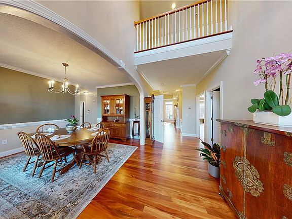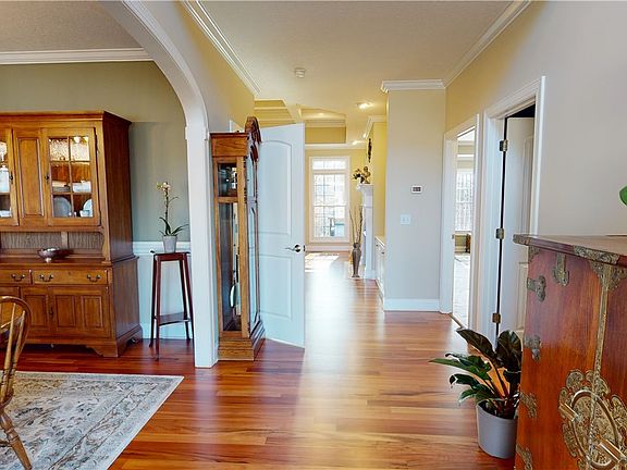 Welcome home to this eye-catching property in the heart of the sought after Waterford Subdivision, surrounded with winter lake views and your own DEEDED BOAT SLIP just down the road. Classic comfort abounds in this four bedroom very spacious home with so many inviting living and entertaining spaces to share with family and friends. The tastefulness of the home is immediate as you cross the threshold into the second story foyer that invites you across the attractive tiger wood floors flowing throughout the dining and great room, up the stairs and upper level hallways. The heart of the home is pulsing with a distinguished gas fireplace, built in shelving, sliding french doors and is additionally richly accented by coffered ceilings. From the bright deck you can also access the ultimate relaxing attached screen porch. The updated kitchen is perfectly located as a hub to everything, boasting beautiful cabinetry with soft close hinges, stainless appliances, new granite countertops, new backsplash as well as tile floor, drawing you in for any cuisine. And as most desire, the master bedroom is on the main level, with large well appointed ensuite bath including his and hers vanities, jetted soaker tub, separate walk in shower and a huge two sided walk in closet. Head upstairs and you'll find 3 bedrooms with oversized closets, 2 full bathrooms, generously sized open bonus room with second gas fireplace and large handsome office. Then make your way to the lower level where you'll find so much more that no one will have to compete for space as there is another open recreation room, full bathroom, unfinished room that could easily be finished into a 5th bedoom, or whatever else you may need, and the 3rd garage space with workshop.