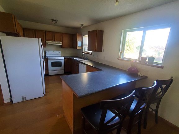 Beautiful 5 bedroom 2 bathroom house with double garage. large back yard with lots of room to run around. Wood floors in the kitchen and dinning room with carpet in the dining room and bedrooms, Full size laundry room with also plenty of basement storage, with additional living area in the basement. Renter is responsible for water gas electricity trash and cable. No smoking, only small pets allowed.