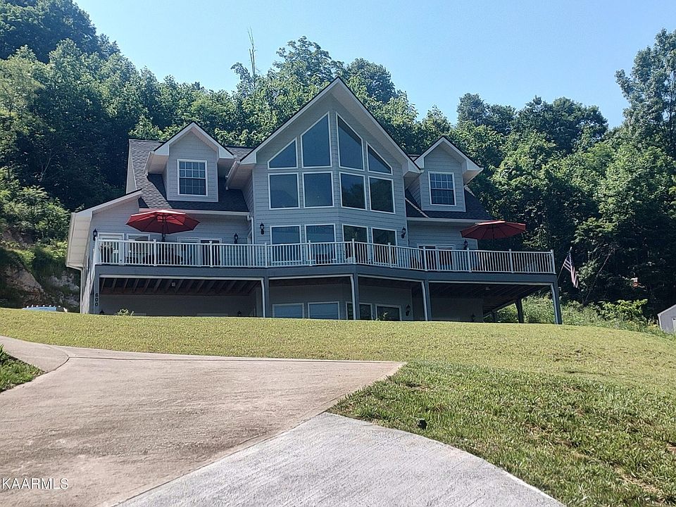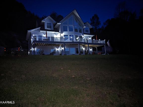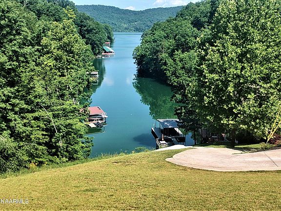 SERENITY ALL NESTLED ON APPROXIMATELY 2 ACRES WITH SOURING MOUNTAIN AND LAKE VIEWS from this Custom built Norris Lake Front 3BR(with one additional room for sleeping) & 3.5 BTH home. Located in Hickory Point Subdivision just minutes to Hickory Star, Waterside, Beach Island and Bubbas. All rooms have a view of the lake. The home features an open floor plan, large kitchen with island under counter lighting, disposal, living room with fireplace, sunroom, master on the main. 2 BRs & one bath on second floor. Upper deck has lots of space and lighted railing. Walkout basement with stunning views features a rec room with additional kitchen with disposal, fireplace and another bedroom and bath.Lower dec is a dry deck which has a liftime transferable warranty - Great for getting out of the rain. Garage is in the basement but the driveway wraps around to the back of the house so that you can bring groceries in on the main floor. Easy access to the lake by way of golf Cart path which will take you to your private dock & Tiki bar overlooking the lake located in a deep water cove. Home comes with most of the furniture. Dues are $300 for house lot and $500 for additional lot. Lots can be combined and the dues would be $300 total. Extra lot has access to a community boat slip if built on. Seller owns all the way to the lake. The property has a flowage easement and the property is owned into the water.He gave the neighbor an easement to put a driveway in. Cart path is the sellers. Sprinkler system also included. Whole house automatic back up generator also included. Buyer to verify square footage.