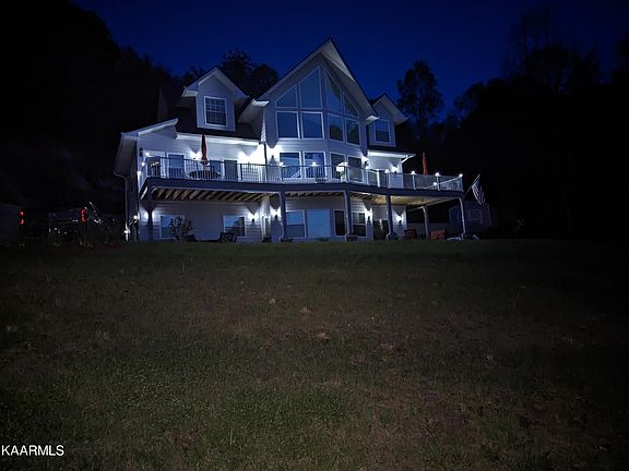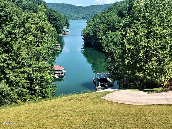 SERENITY ALL NESTLED ON APPROXIMATELY 2 ACRES WITH SOURING MOUNTAIN AND LAKE VIEWS from this Custom built Norris Lake Front 3BR(with one additional room for sleeping) & 3.5 BTH home. Located in Hickory Point Subdivision just minutes to Hickory Star, Waterside, Beach Island and Bubbas. All rooms have a view of the lake. The home features an open floor plan, large kitchen with island under counter lighting, disposal, living room with fireplace, sunroom, master on the main. 2 BRs & one bath on second floor. Upper deck has lots of space and lighted railing. Walkout basement with stunning views features a rec room with additional kitchen with disposal, fireplace and another bedroom and bath.Lower dec is a dry deck which has a liftime transferable warranty - Great for getting out of the rain. Garage is in the basement but the driveway wraps around to the back of the house so that you can bring groceries in on the main floor. Easy access to the lake by way of golf Cart path which will take you to your private dock & Tiki bar overlooking the lake located in a deep water cove. Home comes with most of the furniture. Dues are $300 for house lot and $500 for additional lot. Lots can be combined and the dues would be $300 total. Extra lot has access to a community boat slip if built on. Seller owns all the way to the lake. The property has a flowage easement and the property is owned into the water.He gave the neighbor an easement to put a driveway in. Cart path is the sellers. Sprinkler system also included. Whole house automatic back up generator also included. Buyer to verify square footage.