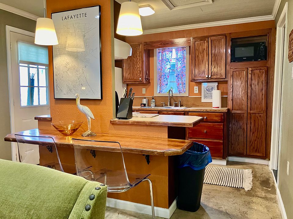 Clean and cozy! This fully furnished teal cottage is just waiting for you. Well appointed with beautiful art, comfortable furnishings, Linens, kitchen appliances and fully stocked kitchen for meal prep, microwave, laundry area and even a home office with desk area and lots of closet space. Perfect for traveling business people, nurses, therapists, pipe inspectors, and/ or professors needing a furnished place without the high cost of STR. Very comfortable queen memory from mattress with bedding included 32"TV with local channels also provided. Includes outdoor furniture on a wonderful stone patio. Utilities all LUS per tenant average around $125/mo including water, sewer, garbage, recycling.. LUS Fiber per tenant Landlord provides yard maintenance and exterminator Owner pays for lawn maintenance & exterminator. Unit available for flexible terms/ month to month lease