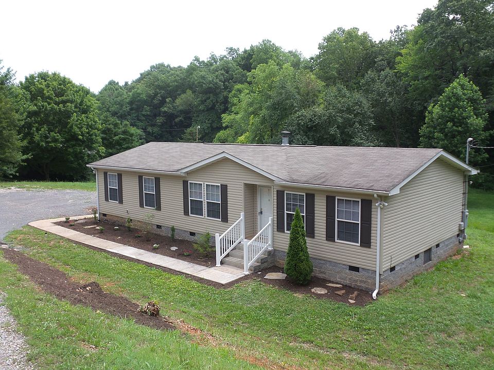Beautifully refurbished home on 1+ acre with 4 beds 2 baths and stacked stone frieplace.Split bedroom design with open floor plan. Formal dining room, breakfast nook. Large master with large master bathroom with tub and walk in shower and double vanities. Lots of cabinets and counter space in L shaped kitchen with appliances. 3 additional guest rooms with bathroom. New carpet and paint. Rear deck to view private yard.