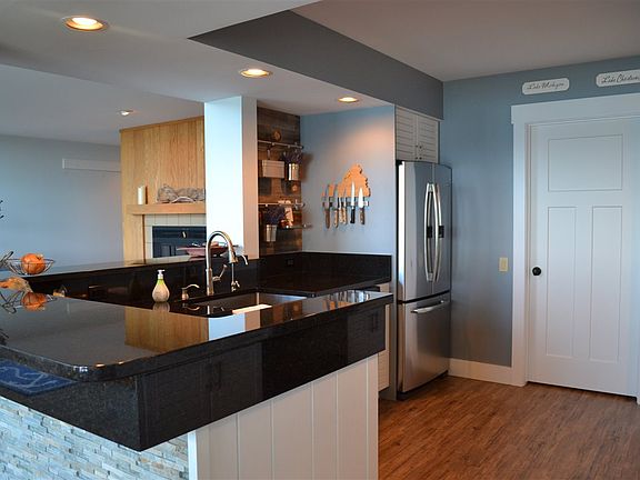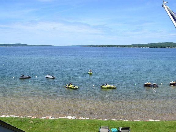 A fantastic remodeled unit in the sought-after Harborage Association. This 3-bedroom, 2.5 bath unit has incredible views and 3 private balconies. Soft, calming colors complement the stonework in the kitchen. The dining room sits just off the kitchen with windows drawing in an abundance of light. Lounge with a view from the living area or move out to the balcony overlooking the water. The master bedroom has a private balcony with a sliding barn door leading to the master bath. The upper level boasts two spacious bedrooms. The waterside bedroom has its own private balcony. In addition to the bedrooms, the loft has a living area that serves as a home office with a relaxing view. The location is fantastic, right on the bike bath leading to downtown Boyne City. The Harborage Association is full of wonderful amenities such as 2500 feet of shared sandy frontage, putt-putt course, and a tennis court.
