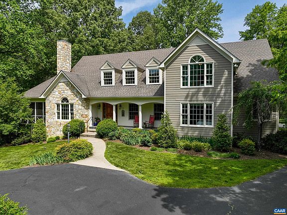 Hidden oasis! This custom-built, secluded home with only one owner in Earlysville is a must-see! Located on 2.8 beautifully landscaped and wooded acres this home feels like a private escape. Hardwood floors throughout the main level sparkle in the light from the large, newly-replaced bay windows. Entertainers will love the vaulted living room with stone fireplace that flows into the formal dining room. Pocket doors separate the formal spaces from the cozier kitchen and den to keep it warm on winter days. The den features a gas fireplace flanked by built-in storage, and the kitchen features maple cabinets, new quartz countertops and a large butcher block island with seating.Main level owner's suite features two walk-in closets and private bathroom with jetted soaking tub and heated floor! Second main level bedroom could also be a home office! Upstairs, three additional bedrooms and two full baths open to a large loft space/media area. Outdoor living spaces include a large screened porch with slate tile floors, covered front porch and composite wood rear deck for grilling! So much storage room for future expansion in the unfinished basement, attic storage and two car garage too!