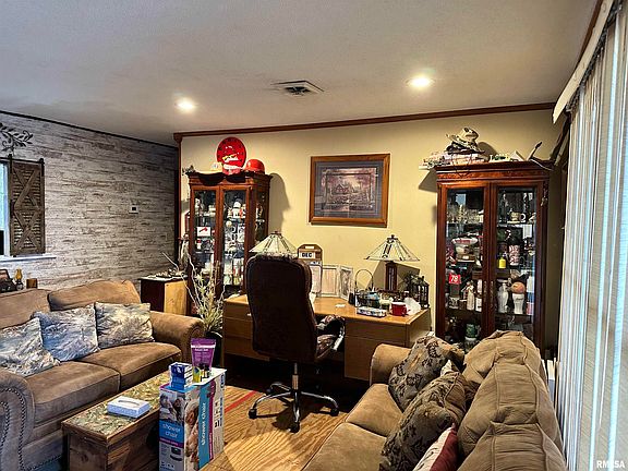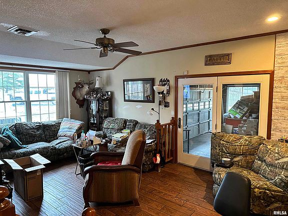 Charming 3 bd, 1.5 ba, Ranch home w/2 car attached garage settled in a quiet neighborhood. Welcoming covered front porch brings you into large open floor plan. Spacious family room has large windows, window to view kitchen, and it is awaiting new owners to lay their own flooring. Cozy sunken living room has large windows to allow the natural sunlight to flow, ceiling fan, and glass doors lead to 24x25 garage. Master bd has carpeting, half bath and door that leads to a lovely deck. Additionally 2 good sized bds for your family. Dining area has white washed brick wall, stylish vinyl plank flooring & glass door that leads to back covered patio area. Eat-in kitchen has a spot to eat a quick snack, SS refrigerator, electric stove cooktop, built-in oven, SS range hood, SS dishwasher, an abundance of oak cabinets, large pantry closet, & ceramic tile flooring. Enjoy the outdoors on the covered patio area or large deck while enjoying coffee or tea while watching the wildlife tip toe through your large yard. New roof Aug 2023, Spray foam insulation in attic and footing. HVAC new 2024. Shed included is 8x8.