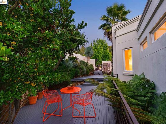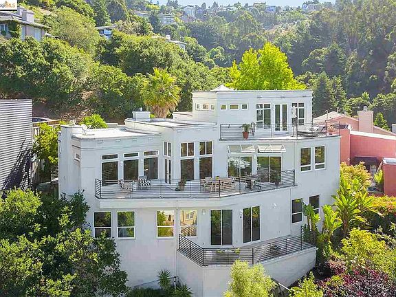 Welcome to El Alcazaba, featuring captivating Bay views, soaring ceilings, amazing luminosity, modern design, beautiful finishes AND leveled outdoor space! This spectacular home features a very user-friendly layout with wonderful indoor-outdoor flow, bright kitchen with quartz counters & Jenn-air appliance suite, open living/dining/sitting rooms which lead to expansive decks for sunsets, relaxation & entertaining; an architectural concrete staircase leads to a luxurious master suite upstairs with spa-like bath & private deck. The lower level features 3 bedrooms (including an additional master suite) & a family room leading to deck, flagstone patio/play area, arbor & sunny gardening space. 3 car garage with internal access; Significant cosmetic & structural upgrades; Short drive to Rockridge BART, Casual Carpool, Claremont Spa, Rockridge, Claremont & Elmwood amenities, & easy freeway access. Come home to high style, tranquility, ease & comfort. Offers as presented. Open 9/1, 2-4:30