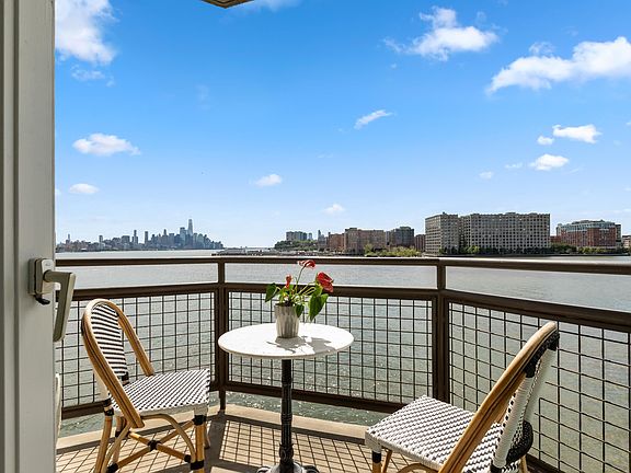 Enjoy phenomenal views of the Hudson River and NYC skyline from this unique, stylish, and spacious 3 BR condo. Desirable southern exposure basking in light and designed for luxury. This gorgeous residence boasts a gourmet kitchen, oversized master suite, 2 terraces, and 2 wood-burning fireplaces. Amenities include 24 hour Concierge, indoor pool, state-of-the-art gym, and 2 assigned parking spaces! This ideal location allows for super easy commute to NYC via Ferry, Light Rail, or Bus and is close to the new Whole Foods market!