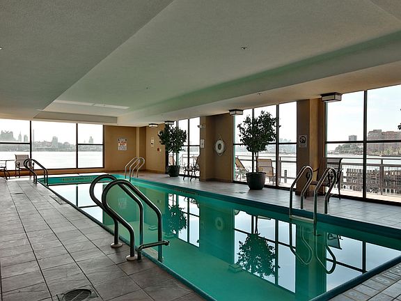 This two-bedroom condo is located in the coveted Riva Pointe complex. The two-level living with floor-to-ceiling view of the marina and the city, two bedrooms, an additional private office, 2.5 bathrooms and 1400 sq ft of living on the river. Sip your morning coffee on the balcony, enjoy the view of the city in the sunset light - the views are unforgettable anytime day or night. Fantastic Riva Pointe condos have all you need for an active lifestyle: a private promenade, 24-hr concierge, a four-season indoor pool, well-equipped gym, yoga studio, jogging and biking along the river, shopping, restaurants, commute to the city and a beautiful riverfront right outside the entrance gate. One parking space and an additional storage unit are deeded to this unit. Completely renovated in 2022. Seller holds NJ real estate license.
