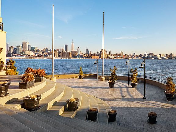 Your own entrance from Harbor Blvd via Community Promenade on Hudson River. Completely remodeled with Sleek Porcelanosa floors, bathrooms & fixtures. Enjoy waterfront living at its finest with rare north and south Manhattan/Hudson River views. This spacious ,very private 2 story, 3 bedrooms 3 bath penthouse has a direct entrance from promenade and stand on the river. It is very safe, perfect for remote working and its resort like carefree living fits well with our new normal. It has high ceilings and skylight and the wood burning fireplace. Your private terrace has Hudson Yards view with very private setting.24 hour concierge, gym and heated pool. NYC ferry arrives next to the bldg. Whole foods across the street. Park and Hudson River promenade are right there and quick walk to restaurants and north Hoboken.
