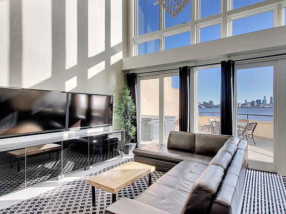Exquisite 3 bedroom, 3.1 baths waterfront unit with 2787SqFt. of living space NYC/Hudson River views and access to the marina. Wood burning fire place, balcony, pool, exercise room and access to ferry, light rail and bus.