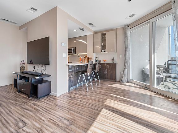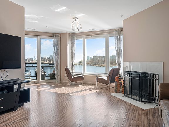 Experience luxury living with this beautiful South-facing, one bedroom, one bath condo, boasting breathtaking views of both the iconic New York City skyline and the Hudson River. Relax on your private balcony and soak up all the sunshine. This condo has plenty of closet space plus a walk-in closet in the master bedroom, a cozy wood-burning fireplace and a convenient in-unit washer/dryer. Enjoy the building's amenities including 24-hour concierge, a state-of-the-art gym, an indoor pool and the convenience of one-car garage parking. With easy access to Whole Foods, NYC Ferry, Light Rail and Bus, this is truly an opportunity not to be missed!