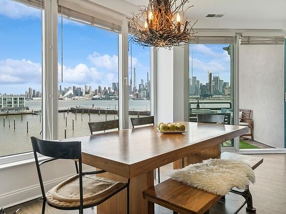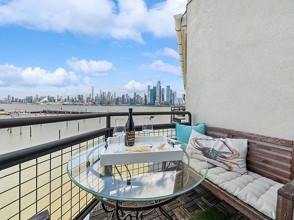 Welcome to your gorgeous waterfront apartment, featuring a stunning semi-private terrace that overlooks the glistening Hudson River and the breathtaking New York City skyline. Imagine sipping your morning coffee or evening cocktail while admiring the panoramic views of the city that never sleeps from your very own private balcony. Inside, you'll find a completely upgraded chef's kitchen that is sure to impress with its sleek induction cooktop and efficient charcoal ventilation system. You'll never run out of space to store your culinary tools and ingredients, as this home offers plenty of storage space that includes custom cabinetry and pantry. The living room also has a real wood-burning fireplace, perfect for cozy nights. The bedroom boasts beautiful bay windows that provide ample natural light. The walk-in closet is perfect for organizing your wardrobe, while the upgraded bathroom features a double vanity and luxurious finishes that make every morning and evening feel like a spa day. This apartment is truly an oasis in the heart of the city. In-unit washer/dryer and one deeded parking space in the garage below are included. Riva Pointe also offers a beautiful gym, a shared community room, an indoor heated pool, and 24-hr concierge. Enjoy the ultimate waterfront location with Whole Foods, Fine Dining, Ferry, Light Rail, and Bus to NYC all just a few steps away!