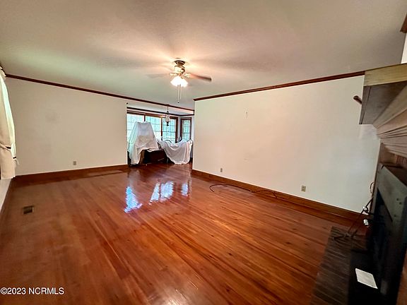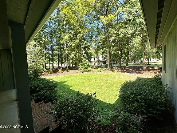 This beautiful home is located in Colonial Park neighborhood in Windsor, NC. Enjoy a covered front porch, formal living room w adjoining sun porch, den w wood floors, fireplace/wood stove and built in cabinet. The kitchen offers a breakfast nook & adjoining dining room. Three bedrooms, two baths. Owners suite has a walk in closet & tiled bathtub/shower w large vanity. The attached carport accesses the covered porch & a storage room. Outside you will find a garden shed plus another storage building. The property is a wooded double lot on the corner of Henry St & Confederate St.
