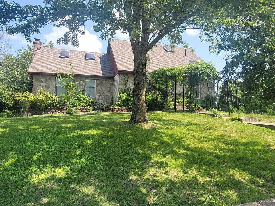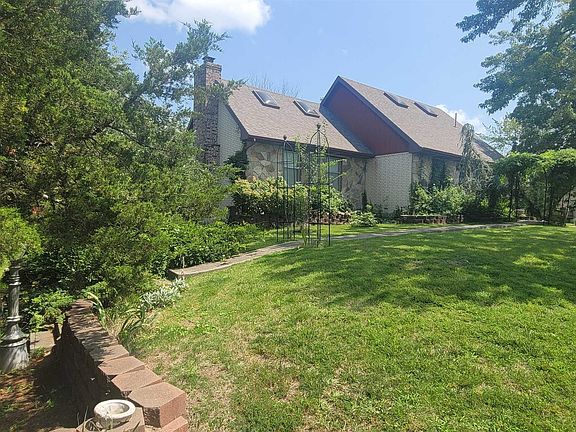 Charming and Contemporary home with lush yard for a green thumb's haven! Landscaped areas for flowers and herbs, paths and stone pond with gator fountain among the trees. Very clean backyard tool/hobby shed, plenty of storage. Versatile living with options to use expansive master bedroom upstairs with walk-in closet and ensuite bath OR use large bedroom on main floor with double closets with ensuite bath. Beautiful french doors as you walk from dining room to great room with vaulted ceiling, skylights and fireplace. Huge daylight-basement to enjoy family room filled with built-in book shelves, closet, adjoining utility room/closet and half bath inside laudry room. Garage offers a utility/wine closet too! This home is SELLING AS-IS.