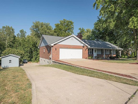 This truly unique, all brick, large ranch home includes an additional lot making over 1.25 acres, 2 separate attached garages that provide parking for 6 vehicles, all in a standard suburban neighborhood located right next to the highly sought after Cottleville area and all its amenities, and conveniently close to the major highways. This home was custom built and was the original builder's private residence. It features an oversized main level 2 car garage at street level, plus a 2nd driveway that leads to the lower level huge 4 car tandem garage with pre-formed concrete parking garage beams (not typical for residential, due to cost). The finished walk-out basement has no poles, builder had site built trusses instead. The home itself features hardwood flooring throughout the main level, a huge main floor laundry, 5 legal bedrooms including two master suites, 2 wood burning fireplaces, large deck (deck is as-is) with patio beneath, and much more. Call your favorite Realtor today!