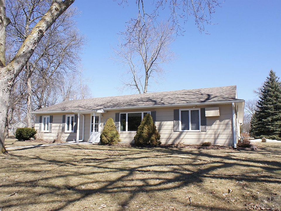 Beautiful Ranch style home with EVERYTHING on ONE LEVEL! Wall was removed between kitchen and living room to create a very open great room feel! Large kitchen island and bar stools and kitchen appliances that are all included! Lots of great storage with the pantry and hidden corner cupboard. Living room has newer vinyl picture window, front door and carpet. Main floor laundry off kitchen and washer and dryer can stay! Wall was also been removed between two bedrooms to make a large master bedroom with two closets. Spare bedroom has new paint and carpet in 2019! Hall bath has new walk-in shower! Family room could be used as master/3rd bedroom with closet and master bath as well. Formal dining room with sliding glass door to back patio and interior french doors to entry way on the other side. 22 X 26 attached garage. New roof, gutters, fascia, sofit and aluminium peaks in 2012. Roof has transferable lifetime warranty! Central air compressor new in 2016. All on a nice corner lot with mature trees!