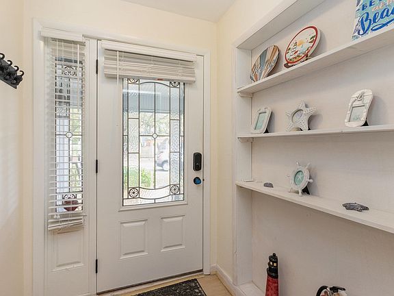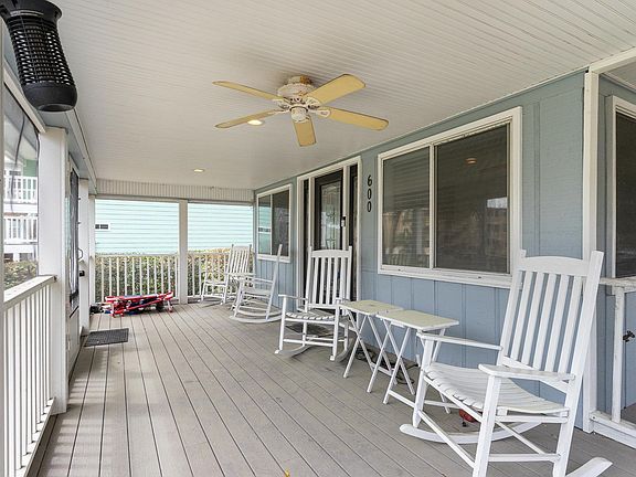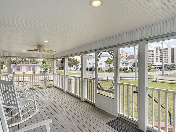 This charming 3-bedroom, 2.5-bath coastal retreat is located just one block/500 feet from the beach, with direct access at the end of 6th Avenue, making it easy to walk, bike, or take a golf cart to the beach. There is a beach convenience station at the 6th Ave beach access with clean restrooms, water fountain, sand shower, and beach access ramp for wheelchairs and wagons. Oceanviews from the porches! Situated on a large corner lot with no HOA! This home features a wrap-around screened porch, a spacious fenced-in backyard, and ample parking, including space for a boat. The screened porch has a ceiling fan, perfect for enjoying coffee or beverages in rocking chairs. Soak up the sun on the patio which is also accessible from the master bedroom. Inside, you will find gorgeous knotty pine walls, easy-care laminate wood floors in the kitchen and living areas, and an updated kitchen with granite countertops, a stainless steel stove, a stylish backsplash, and white cabinetry. One of the secondary bedrooms even has its own private porch. Additional highlights include a two-car garage with side access, a laundry closet with storage cabinets above, and recent upgrades such as a new HVAC in 2024. Close to shopping, dining, entertainment, golf courses, and attractions, this home offers the perfect blend of comfort and coastal living.