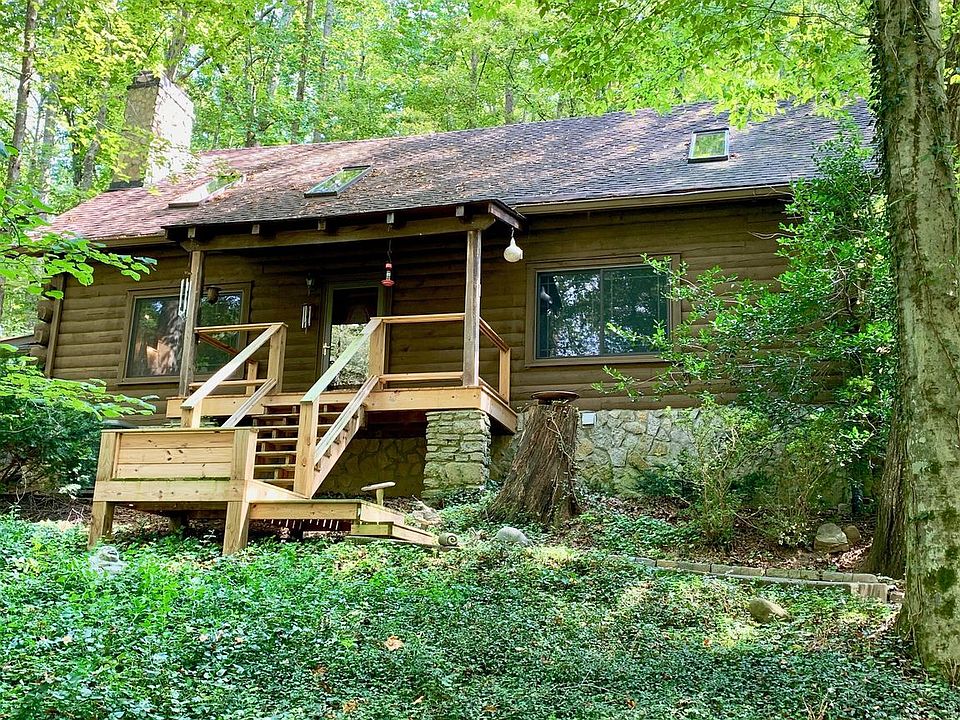 Escape to nature! Rustic log home on over 6 acres. Loads of privacy. Four season sunroom surrounded by enchanting woodland setting. Hardwood floors, six skylights. Large master with loft sitting area. Two car tandem garage plus basement. Separate two car garage. Close to Nashville.