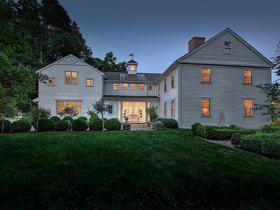 Brought to life by its current owners, stepping through the front door is like stepping in to a world of culture, art & tales of travel. Warmth is breathed in to every room, as if the Far East or Barcelona has met Greenfield Hill. In 2008, the home was brought down to the studs, rebuilt & expanded, creating nothing short of a flawless farmhouse masterpiece. The basic lines, finishes & floorplan of the home remain classically designed, but now one can see how this house can wear many hats. The main level features an expansive white kitchen w/ inlay cabinetry, a 2-step island w/ Walnut & Botticelli tops, a wine fridge & cathedral ceilings. The kitchen opens to a very special dining room w/ bluestone flooring & walls of windows, a flexible great room space w/ built-ins & gas fireplace, a cozy sitting room/library w/ fireplace & expansive living room w/ oversized fireplace. The outdoor spaces, accessed by every room via French doors, are breathtaking, w/ outdoor dining, built-in propane fire-pit w/ stone seating surround, automated awning, covered & uncovered spaces w/ room for pool. The second floor features 5 bedrooms, w/ a sweet master suite, 4 add'l bedrooms, a bonus room w/ cathedral ceiling & cupola, laundry room, 3 full bathrooms & a rear staircase that leads back to the kitchen area off potential second master bedroom option/great room. Set on a 5+ acre bucolic property, just minutes to commuting, shopping, dining & golf course. Romantic, timeless, not to be missed.