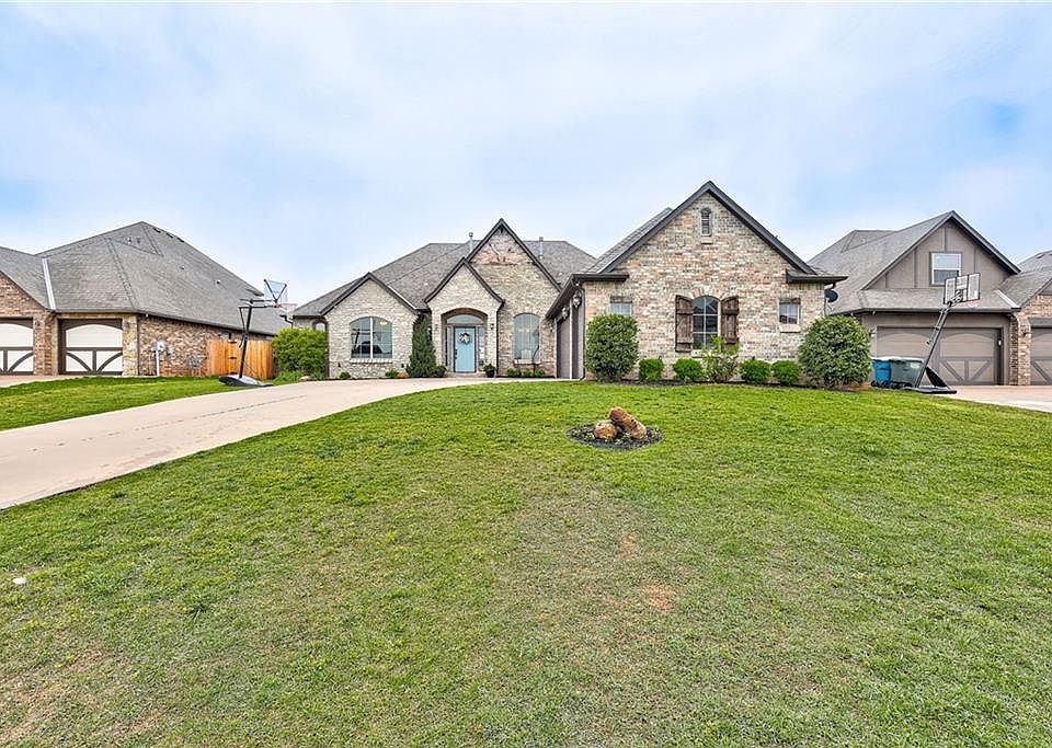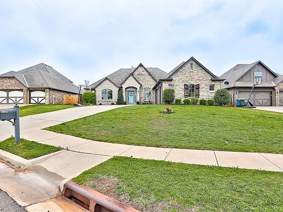 Absolutely stunning home located in the Top-Rated Edmond School District! Superbly located in the sought after Twin Bridges subdivision on a spacious lot with a tranquil backyard that abuts to a horse farm! This beautiful 4-bedroom 2.5 bath + office home boasts over 2350 sf. As you enter the home you will fall in love with the open floorplan, magnificently tall ceilings, floor to ceiling windows with stunning natural lighting and an elegant stone fireplace w/ wooden mantle. The kitchen was meticulously designed with beautiful white cabinetry, granite countertops, tile backsplash, middle island and stainless-steel appliances. This home has a formal dining space directly off of the kitchen. The oversized primary bedroom comes with a spa-like ensuite equipped with dual vanity sinks, large, tiled shower, soaking tub, and a spacious walk-in closet with built-ins. HOA includes pool, clubhouse, playground, splash pad and fishing ponds. 3 car garage w/ storm shelter for your piece of mind!!