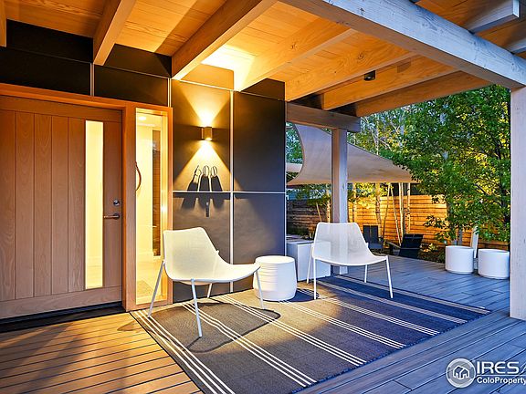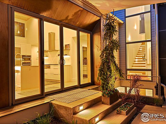 Custom Scandinavian Modern home designed by architect Andy Johnson of DAJ Design. This home was selected as a finalist for Colorado Home and Lifestyle Magazine's "Home of the Year" in 2017. Outstanding features include: beautiful beetle kill pine slat ceiling and encased entry closet in main living area, wood burning stove by Belgian manufacturer, Stuv, includes a custom built metal encasement, main living area chandelier made from naturally shed antlers by Colorado Crystal Farms, chef's kitchen features gas and steam oven by Miele and Sub Zero refrigerator, butler's pantry houses plenty of storage as well as prep counter, main floor primary bedroom flows into bathroom with free standing tub and glass enclosed shower, primary closet includes a California Closet system. Stunning solid oak floating staircase leads to two wonderfully sized upstairs bedrooms. The mostly finished basement is anchored by a 4th bedroom/office and a 3/4 bath, large rec/media area and plenty of storage space. Custom storage cabinets with ample closet space throughout the home. Fully custom landscaping and courtyard with overhead shade sails and low voltage lighting throughout the yard making it perfect for outdoor entertaining. Only a short walk to downtown Louisville, restaurants, the library and a lovely park / dog park. Wow! What a spectacular home.