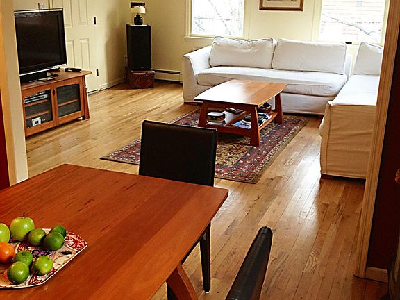 Bright and sunny corner unit - Triplex 2 BR + Den. Fantastic layout with a Large Kitchen, LR and separate DR on first level, 2 BR's, 1.5 baths, W/D on second level, den with sliding doors leading to a huge private roof top on the third level. Anderson windows and FIOS ready. Deeded garage parking, storage and shared common courtyard complete the picture!