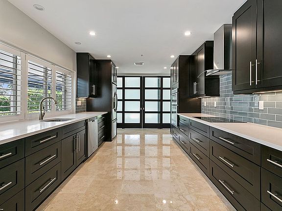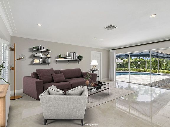 Stunning 3/3 pool home very private corner lot. Home features island decor, new baths,ss appliances, marble floors throughtout this completely renovated home,quartz countertops,hi-hats,crown molding,plantation shutters and newer roof. Lush tropical setting surrounds secluded oversized patio, newly resurfaced pool. Brand new Rheem AC with all new ductwork, extensive closet space and a private office for work at home. Separate laundry room with brand new Samsung washer and dryer, circular driveway for extra off street parking in addition to a two car garage with porcelain tiled floor. Low HOA fees and A rated schools are a plus!! Hurricane impact windows and accordion shutters on doors give you complete hurricane protection.