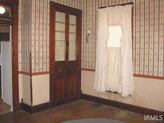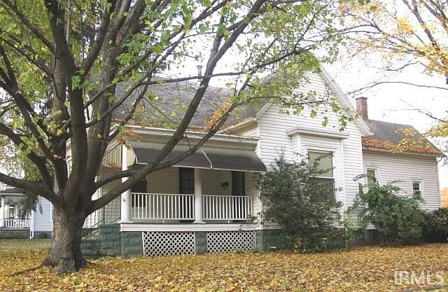 Cute three bedroom older home located on corner lot in historic area of town. Home has original wood floors, woodwork and transoms. Living room and dining rooms both have window seats and crown molding. Dining room has a built-in hutch with glass doors. The kitchen has lots of cabinets and comes with all appliances. One bedroom has a walk-in closet and the other two bedrooms each have two closets. The laundry/mud room is just off the kitchen. There is a partial basement. The detached garage has concrete floor, electric service and a separate storage area. Includes: window treatments, bathroom mirrors, ceiling fans, kitchen appliances (range/oven, refrigerator, microwave), washer, dryer, refrigerator on back porch. Also includes a one-year HMS Home Warranty. Per owner: windows have been replaced and vinyl siding has been replaced; 2014-new water heater. Great starter home or retirement home. Property is being sold "AS IS."