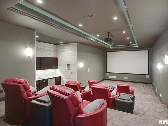 Welcome to a property that defines modern opulence and exclusivity in every one of the 5,600+ square feet of living space. Nestled within the prestigious Spring Lake Country Club, this stunning architectural masterpiece exudes elegance. Key features include 5 spacious bedrooms, 3.5 luxurious bathrooms including a large master suite with lavish steam shower and cedar lined walk-in closet. The gourmet kitchen in the heart of this home is a chef's dream, featuring top-of-the-line appliances, custom cabinetry, and expansive countertops, inviting culinary creativity and seamless entertaining. Experience cinematic bliss or watch the big game within your own private theatre room, a haven for movie nights and entertainment extravaganzas. Generously proportioned living areas adorned with architectural finesse and natural light, perfect for hosting gatherings or unwinding in style. Beyond practicality, this home offers convenience with a spacious four-car garage with an additional lawn mower garage in the basement. The indoors flow seamlessly with the multiple relaxation spots on the covered concrete deck or ground level patio. This exceptional property represents the pinnacle of luxury living, where every detail has been carefully curated to exceed the highest expectations. Seize the opportunity to own this sophisticated retreat!