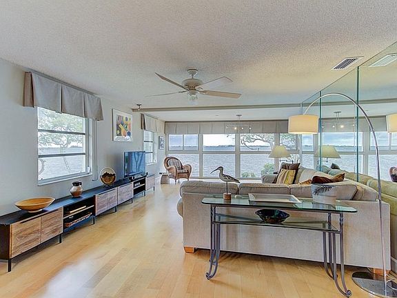 Panoramic water views of Anna Maria Sound await you in this updated beautiful condominium home! You will be living right on the water enjoying the tranquility and serenity of the coastal shoreline visited daily by Ospreys, Spoonbills, and an occasional Eagle, right outside your windows! Spectacular views of the Sunshine Skyway Bridge and the bridge to Anna Maria Island are yours, as well! Truly an oasis, this 2 bedrooms 2 bath condo has been lovingly cared for and upgraded by the owners. Handcrafted maple cabinets in kitchen, granite countertops, custom moveable island, GE monogram beverage center, GE Profile induction oven and Bosch dishwasher make entertaining a breeze. Custom window treatments, newer upgraded wool carpets in bedrooms. Electronic hurricane shutters meeting the highest Florida wind ratings show you that these owners spared no expense. Newer energy efficient Trane air conditioner installed in 2015.Insulation pumped into attic and additional vents and returns added. Kayak access just steps away, 2 large community pools and walking distance to the sugary sands and Gulf of Mexico waters make this everything you've been looking for! plus this property is being sold Turnkey Furnished. Truly a rare opportunity to own this gem!