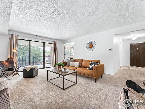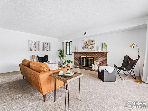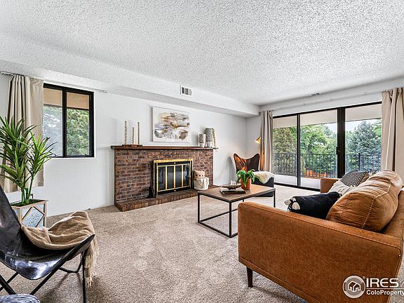 Welcome to your move-in ready, Boulder base camp, complete with dedicated covered parking, an in-unit laundry room, and central AC. The neighborhood boasts gorgeous mountain views and the lush ground afford a serene yet convenient lifestyle. This desirable end unit features many windows that provide natural light and a tree-house vibe. Having the largest one-bedroom layout in the complex allows for functional spaces and ample closets to store your gear. The updated kitchen, equipped with stainless steel appliances, opens to a formal dining area and a spacious living room with a wood-burning fireplace. The private primary bedroom and full updated bathroom gives you a sense privacy and comfort. Step out onto your oversized covered balcony to enjoy your very own outdoor oasis, or enjoy a relaxing visit to the community pool. This prime location provides you quick access to explore nearby trails, local eateries and shops, plus an easy commute via nearby US-36 to Denver. Great option for your next home or investment property at an affordable price point in Boulder, ready to go with a fresh coat of paint and brand new carpet!