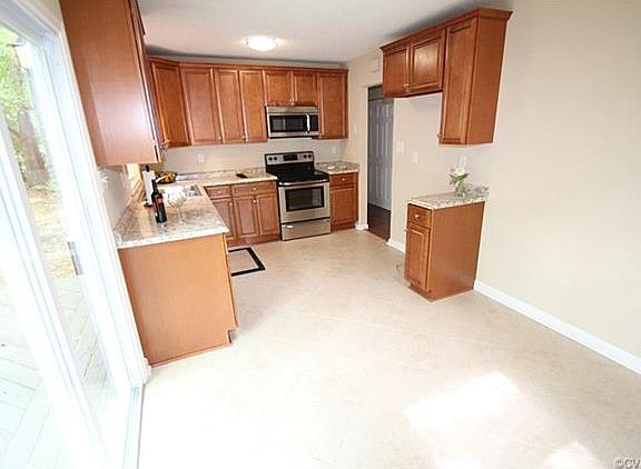 This beautiful 4 bedroom 2 full bathroom 1,662 square foot cape-style home is located on a quiet street in Chesterfield County. It has been beautifully renovated and has many many features and upgrades! Some of its many features include beautiful NEW laminate hardwood flooring, central A/C heat pump, washer/dryer hookups, NEWLY painted cedar siding, dimensional roof, NEW special order kitchen cabinets and counter-tops. Other features include NEW brushed nickel light fixtures, NEW outlets and light switches, NEW stainless appliances, NEW energy-efficient windows, NEW bathroom vanities, NEW ceramic tile flooring, NEW carpet, NEW interior paint, NEW gravel driveway, NEW professional landscaping, NEW gutters and downspouts, full front porch, large rear deck, and much more! The keyword here is NEW. Just about everything is NEW! Must see this home to believe how nice and NEW it is. There is nothing on the market that compares with this home. The closest thing is new construction at a much higher price and none of the upgrades!