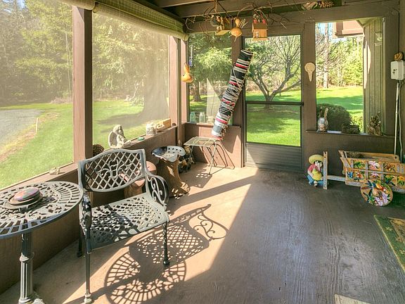 Private hide-away is yours on this beautiful level 5 acres; fully fenced. Featuring a spacious 4 bedroom, 2.5 baths with 1836 sf. that makes you feel right at home the moment you enter this lovely home. Living room has cozy wood stove, ceiling fan and a large picture window to enjoy the amazing views. Kitchen with granite counters, tile floor, an abundance of storage, snack bar, and pantry. Laundry room with 1/2 bath. Large master suite with slider to balcony deck, walk-in closet and window seat; additional two guest bedrooms with bath, walk-in closets and own decks. Wonderful screened in sun room is a perfect spot for that morning cup of coffee. The grounds on this property are breath-taking; flower gardens, fruit trees, grape vines, established garden area and recirculating waterfall. Inground sprinklers and drip system. An attached finished two car garage. Perfect man cave/exercise room above garage. Detached 24x36 barn/shop with loft. RV parking, gated entrance. Virtual Tour.